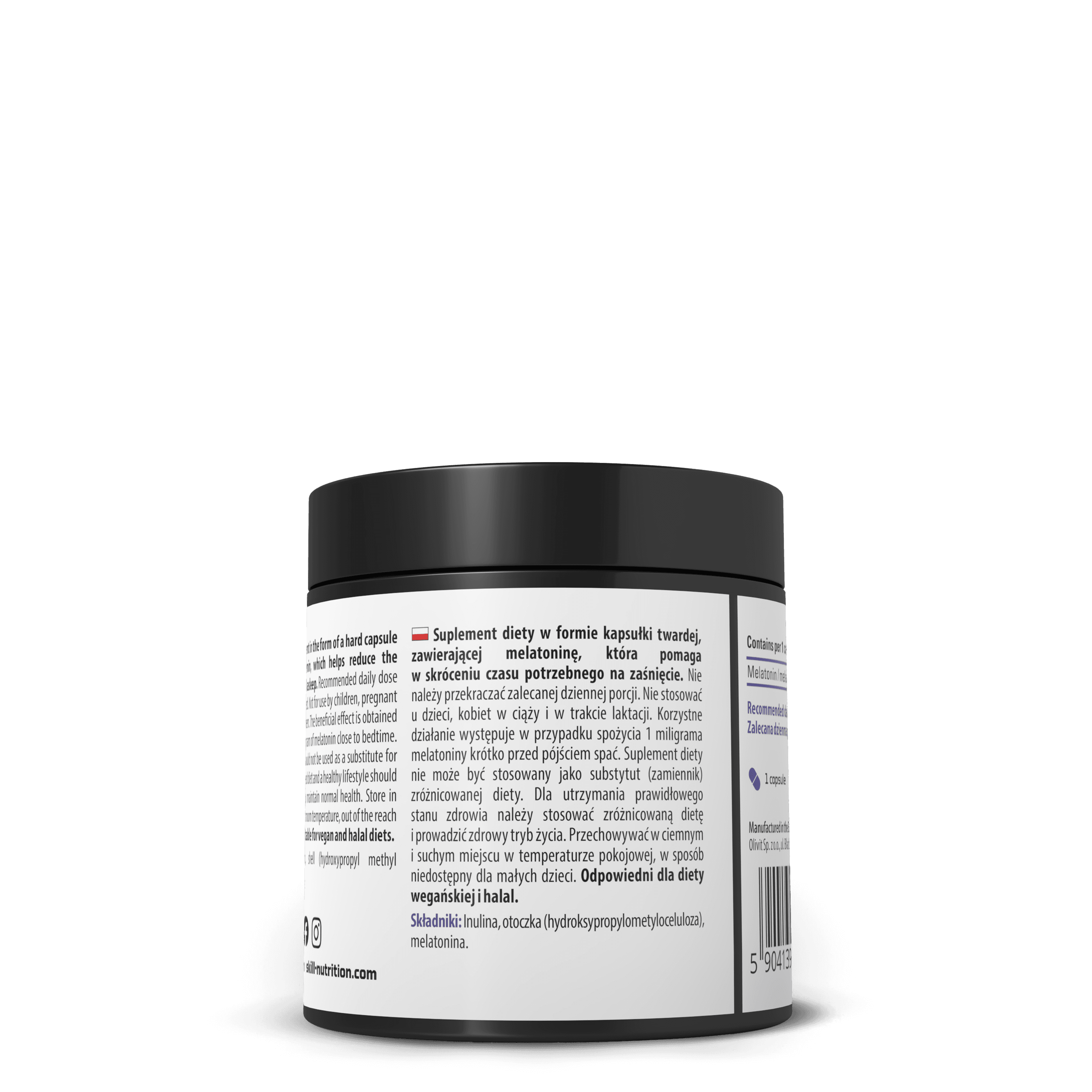 Food supplement in the form of a hard capsule containing melatonin, which helps reduce the time it takes to fall asleep. Recommended daily dose should not be exceeded. Not for use by children, pregnant or breastfeeding women. The beneficial effect is obtained by consuming 1 milligram of melatonin close to bedtime. Food supplements should not be used as a substitute for a balanced diet. A varied diet and a healthy lifestyle should be carried out to help maintain normal health. Store in a dark and dry place at room temperature, out of the reach of young children.