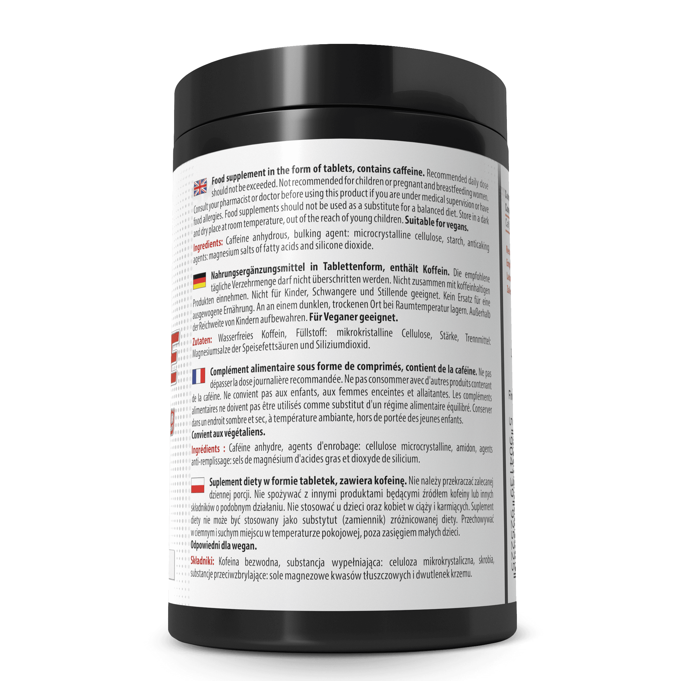 Contient 200 mg de caféine pure par comprimé et garantit une absorption rapide et efficace.