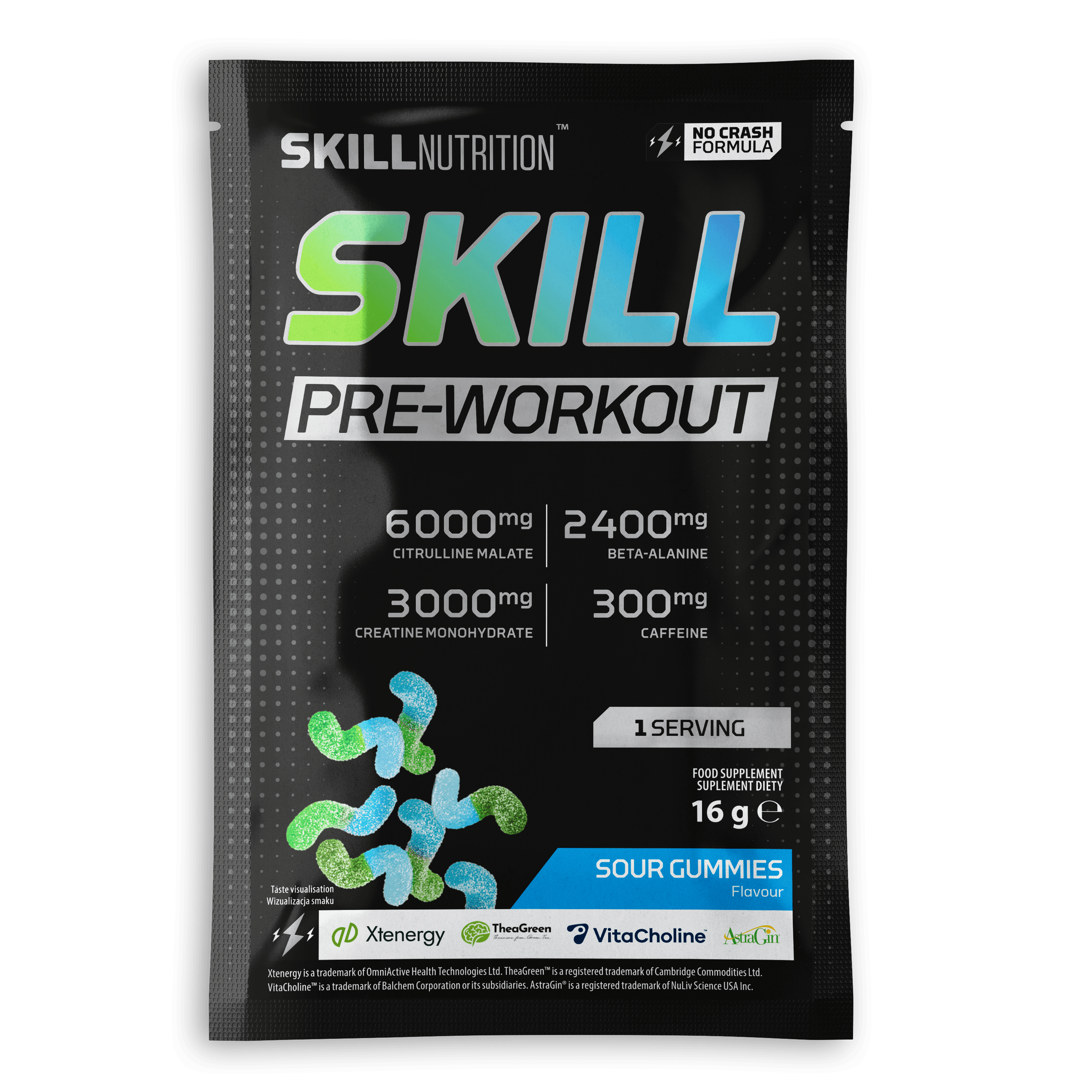 Skill Pre-Workout, Sour Gummies 16g